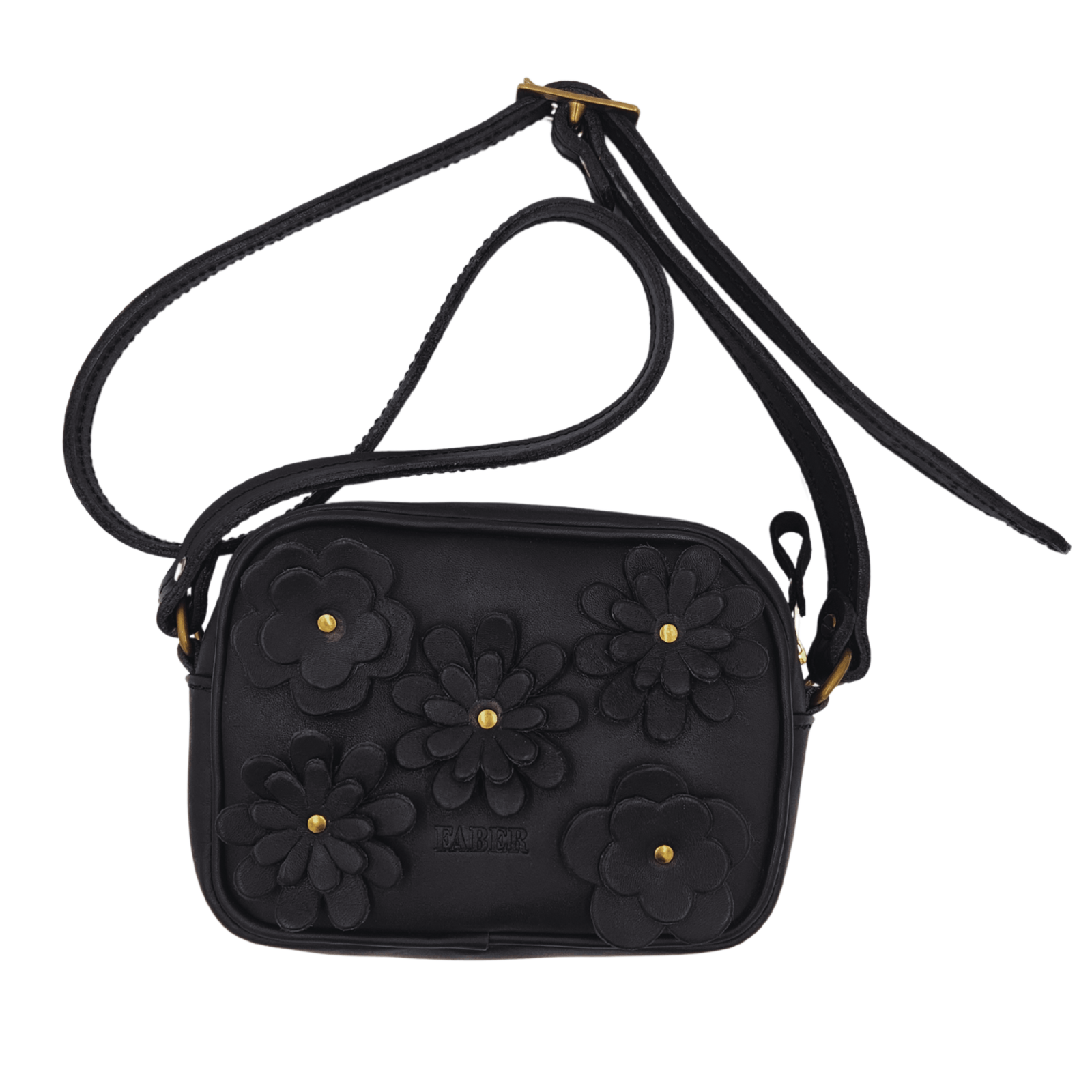 Crafted from premium full grain leather & hand-stitched for lasting structure, this piece is fitted with solid brass hardware & lined with printed cotton showcasing original Faber artwork. The fixed sling strap offers hands-free ease, while the floral detailing makes it a statement of quiet confidence. Feminine, functional & full of charm.